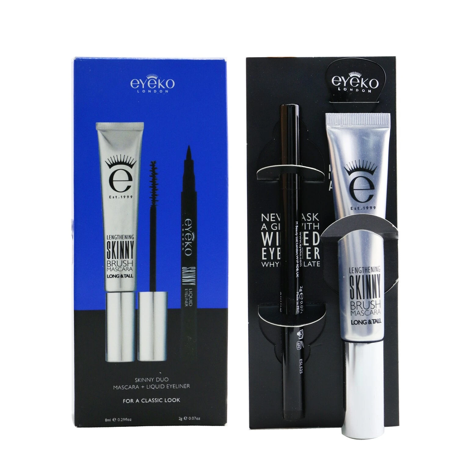 Skinny Duo: 1x Skinny Brush Mascara 8ml/0.29oz (# Black) 1x Skinny Liquid Eyeliner 2g/0.07oz (# Black) Skinny Brush Mascara: An award-winning vegan skinny mascara Water resistant formula helps lengthen, enhance & intensify eye makeup look that lasts all day Features evenly spaced birstles to capture the shortest lashes Contains Pro-Vitamin B5 & Botanical Oils to promote lash growth by preventing breakage Delivers healthier-looking lashes that do not smudge, flake or crumble Housed in a squeezy tube to minimise waste Paraben-free Skinny Liquid Eyeliner: A vegan skinny liquid eyeliner Features a tapered precision tip that glides effortlessly across eyes for a controlled application Long-wearing formula with Laminaria Ochroleuca Extract to condition lashes Contains algae extract for a gratifying, colour-intense & smudge-proof finish No animal testing & paraben-free